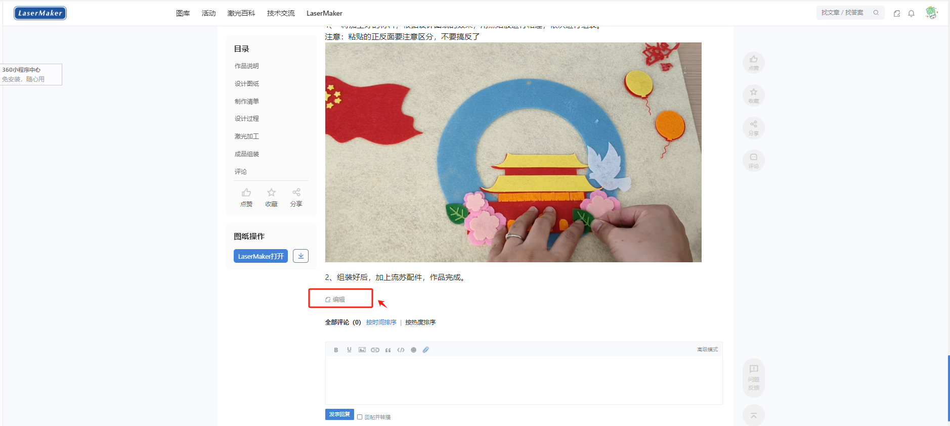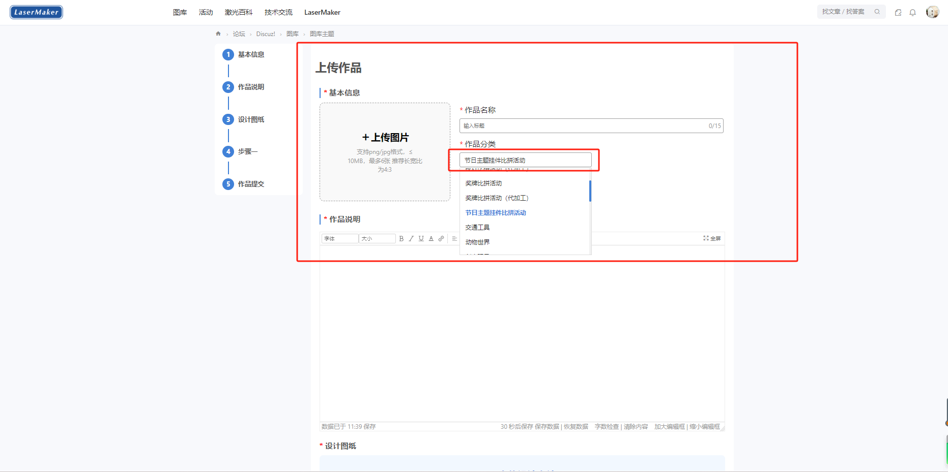 进入lasermaker.com.cn社区,点击发表新图纸,进入图纸发表页面。